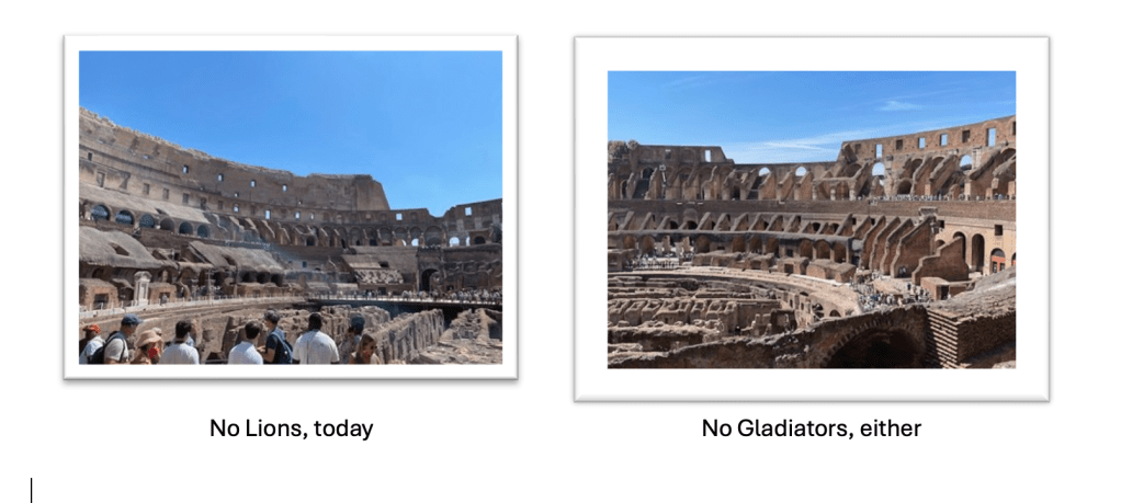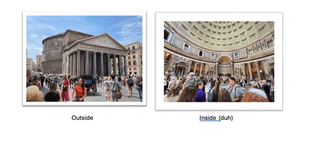 We did classic tourist hustle and bustle: a tour of the Colosseum; a tour of the Pantheon.  They were reminders of excellence in architecture, engineering, and entertaining the deplorables.