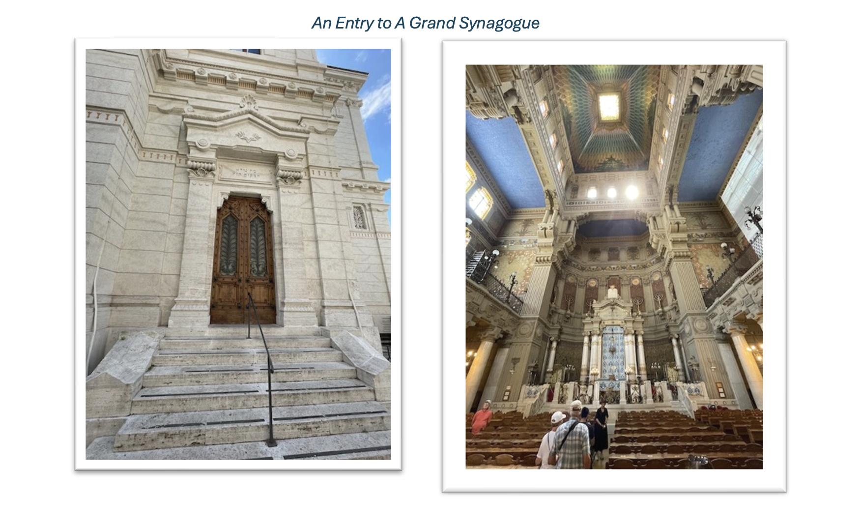 In one small restaurant we could not help but hear snippets of conversation at the next table: a mature woman and a younger man — speaking to the waitress in Italian and in English.  But, speaking to each other in neither language.  Eventually, we found a way to strike up a conversation and discovered that the young man was the son of the Israeli woman, who was visiting to see how his studies in medical school in Rome were progressing.  And, I suspect, to escape the chaos and rancor at home.  Of course, their other language was Hebrew.  After hearing about Joy’s book, they offered to help arrange a visit to the Great Synagogue.  Not necessary, it turned out.