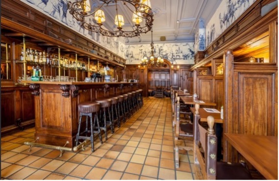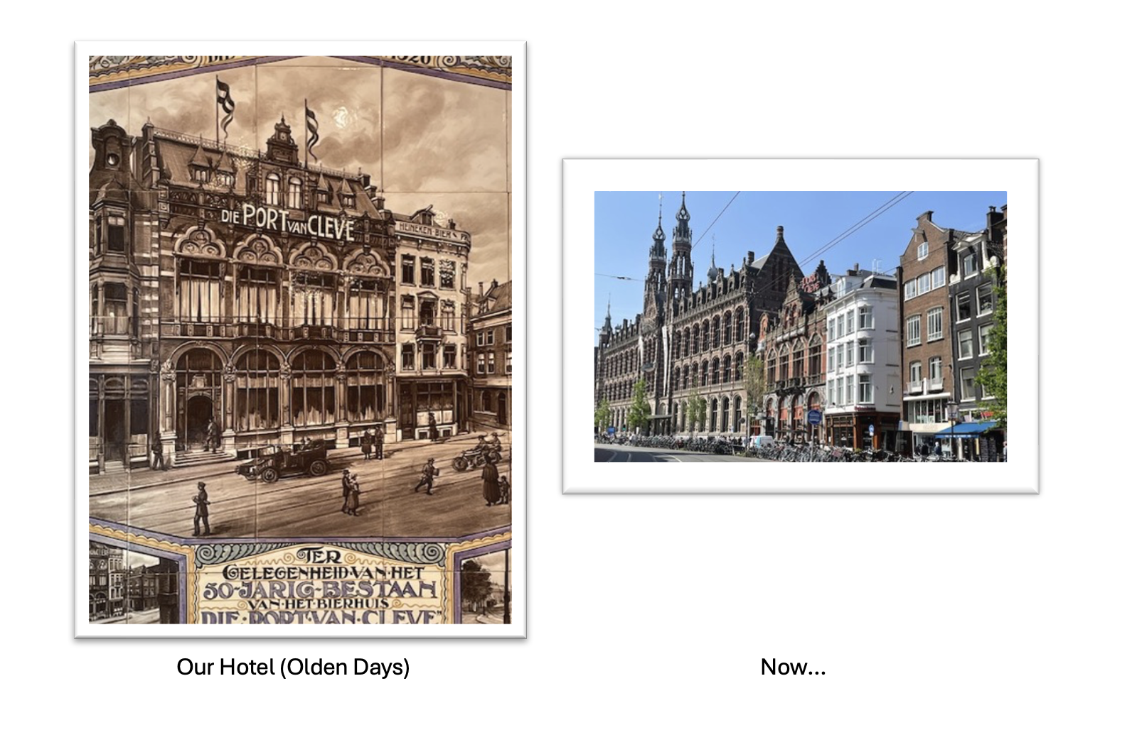 Our hotel, Die Port van Cleve, just off Dam Square, was a delight, celebrating its 150th anniversary.  Bar Bodega – de “Blauwe Parade” is a traditional Amsterdam bar full of tasteful beers, jenever, and history, including the largest Delft Blue tile tableau!