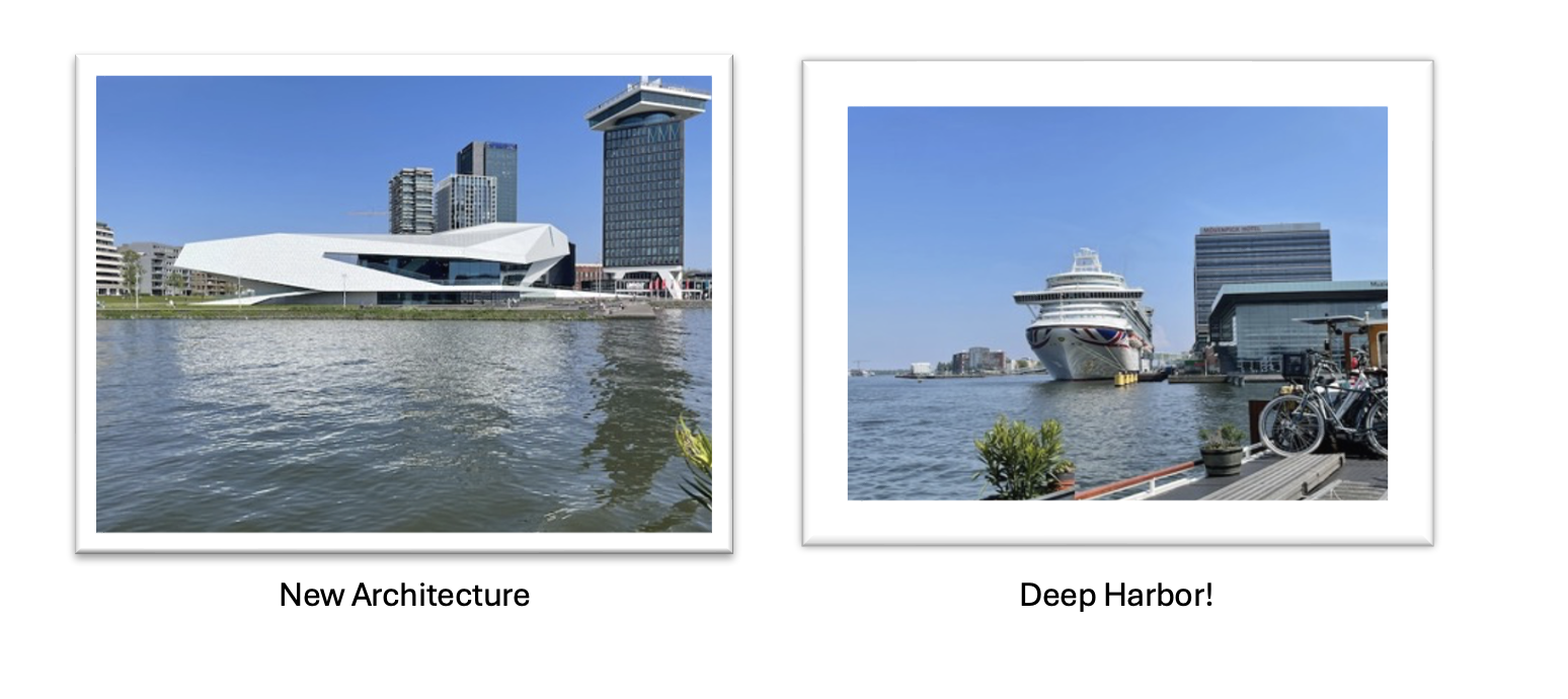 More could be said about Urban Planning in a nation where 40% of the country is not just planned but created!  Build originally for pedestrians and floating vehicles, Amsterdam is now comfortable for the “15 Minute City” lifestyle: pedestrians, bikes (!), and functional public transportation.  Yes, there are automobiles, but mercifully few.