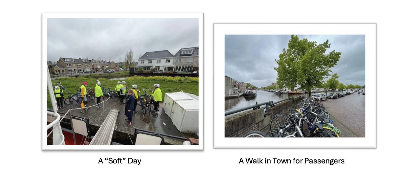 Despite some days with an attenuated line of riders, no one became lost or abandoned.  But, as with any form of travel, dynamic changes (construction / washed out canal segments …), last month’s route may not work today.  So, Arie used the GPS function of his phone and conversations with local folks to refine our path as he went.  (So much for Cue Sheets for independent-minded bikers.)