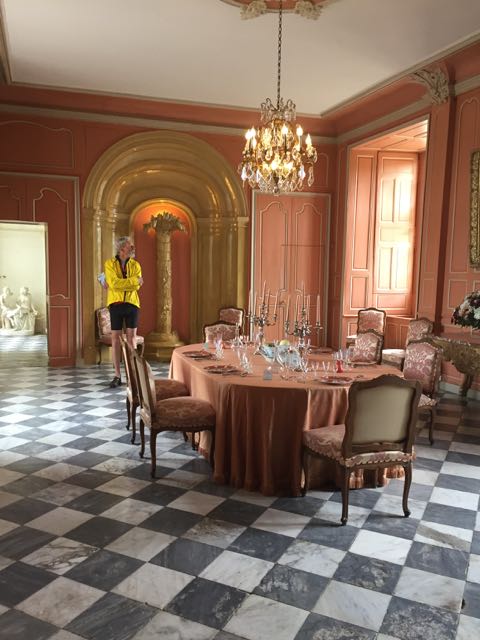 By the time we are finished touring the castle, there is a wait for the returning shuttle bus. Why not have a quiche and salad in the clouds? Too cloudy / foggy / rainy to wander outside and take pictures of the valley below.